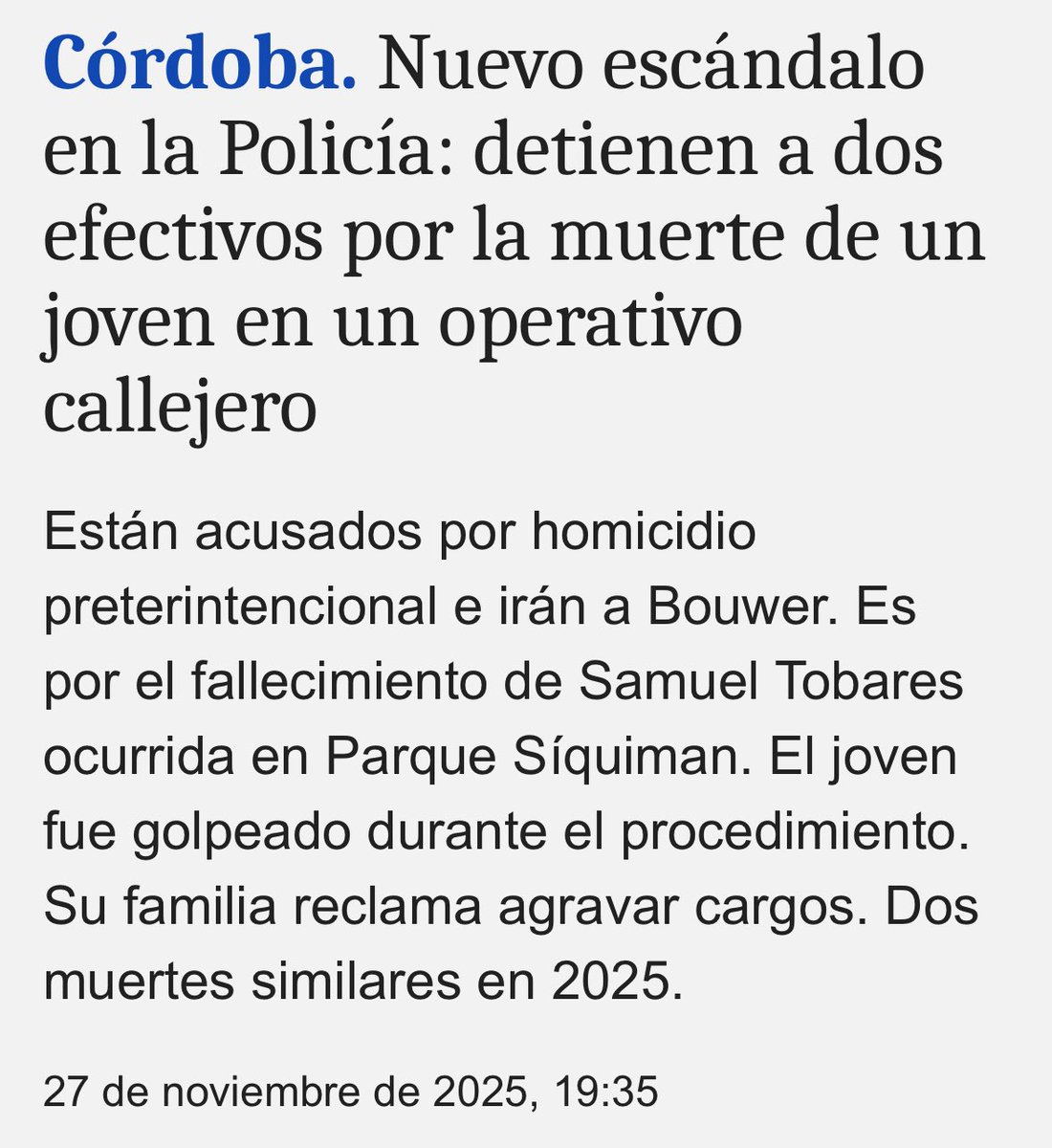 Hechos distintos, sospechas de acciones abusivas y fuera de protocolo similares de algunos agentes -no todos- de la Policía en Córdoba. Cuidado.